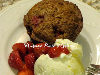 strawberry muffins served with ice cream and fresh strawberries